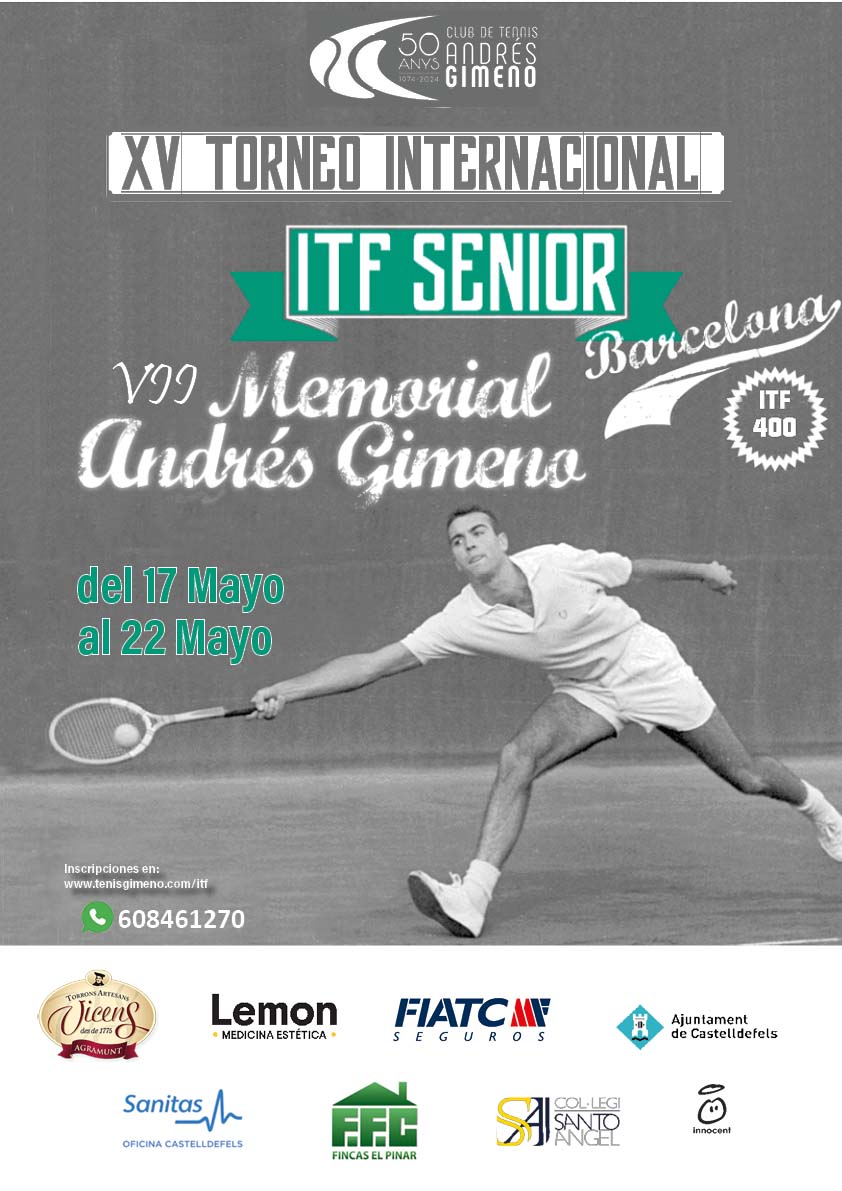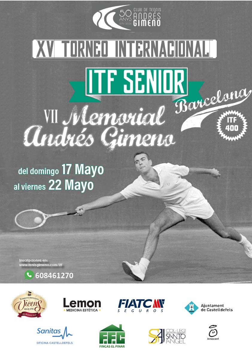 El Tennis Andrés Gimeno os invita a participar en la XV Edición del Torneo Internacional ITF Senior del 17 al 22 de Mayo de 2026.