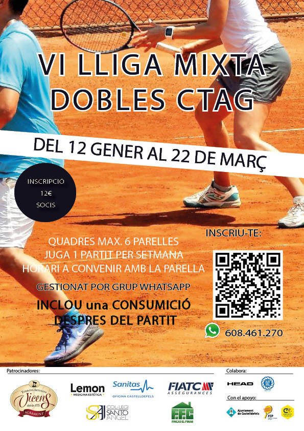 Liga de tenis en modalidad de dobles mixtos. Elige a tu pareja y compite en un cuadro Round Robin. Juega 4/5 partidos, entra en un grupo de WhatsApp dónde publicaremos toda la normativa y actualización de cuadros semanalmente.