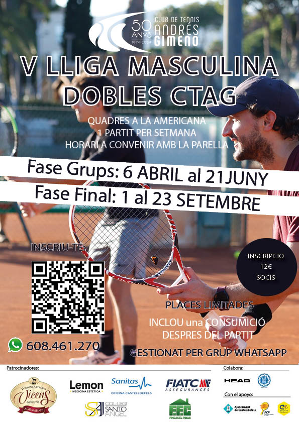 Liga de tenis en modalidad de dobles masculino. Elige a tu pareja y compite en un cuadro Round Robin. Juega maximo 5 partidos, entra en un grupo de WhatsApp dónde publicaremos toda la normativa y actualización de cuadros semanalmente.