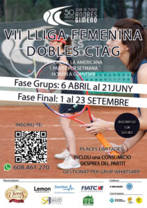 Liga de tenis en modalidad de dobles FEMENINO. Elige a tu pareja y compite en un cuadro Round Robin. Juega maximo 5 partidos , entra en un grupo de WhatsApp dónde publicaremos toda la normativa y actualización de cuadros semanalmente.